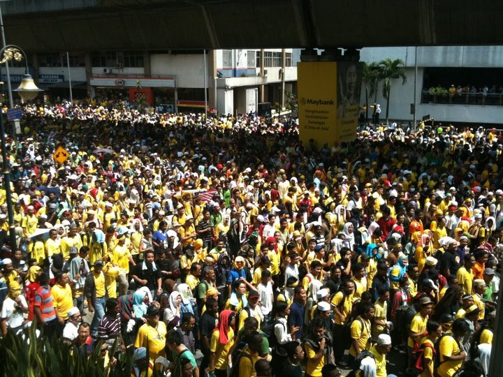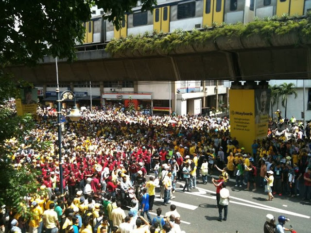 2:45pm: We walked to Menara Maybank and saw a bigger crowd here. The crowd here are very "semangat"! They seem to be heading to Dataran Mederka.